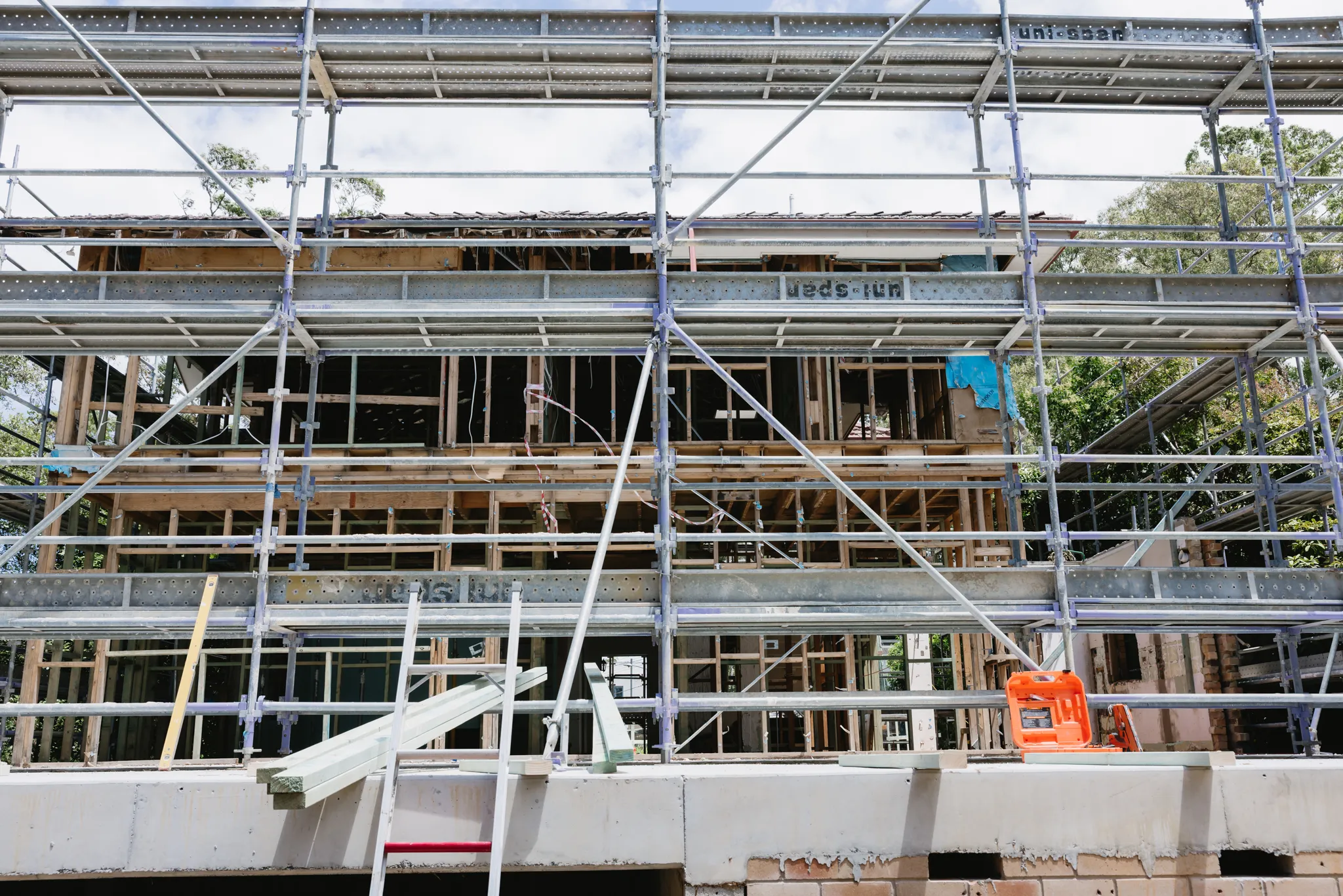A complete transformation of a double-story residence in the heart of Lane Cove, this project by Buildem Constructions showcases the complexity of full home restorations. The strip-out and rebuild at 16 Gemma Road required careful scaffolding design to provide safe access during demolition and reconstruction phases while working in an established residential street. Our solutions enabled the construction team to execute a complete renovation, from structural works through to final finishes, all while maintaining safety and minimizing impact on neighboring properties. This project highlights our expertise in residential renovation where adaptability and precision are paramount.